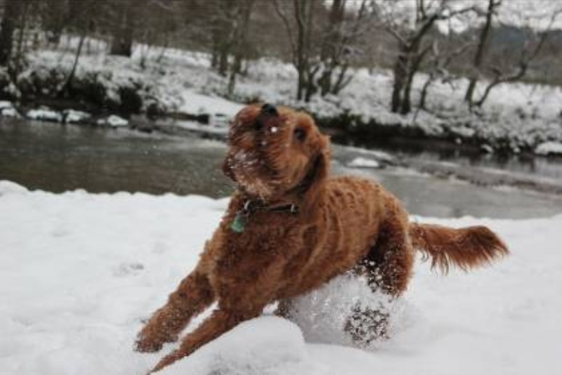 We returned to the car with full bellies and ready for a walk in the snow; delighted to find that Toby hadn’t been sick in the car whilst we were inside (the puppy not an unwanted friend). We drove westwards to Allen Banks, about 20 minutes past Hexham. Parked up and set off along the footpath. We took the path to the right that headed up the bank. At the top you have a great view of Ridley Hall and its grounds.